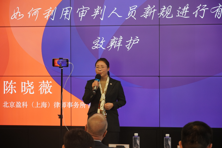 陈晓薇律师以《如何利用审判人员新规进行有效辩护》为题,围绕如何利用审判人员进行有效辩护展开讨论。她以英美法系司法实践为例,引出事实审理与法律审理相分离的审判模式。她提倡,在面对犯罪分工细化,犯罪领域超前甚至新的犯罪领域被创设,以及司法鉴定存在参差不齐现象的当今,让相关专业人员进入审判组织。